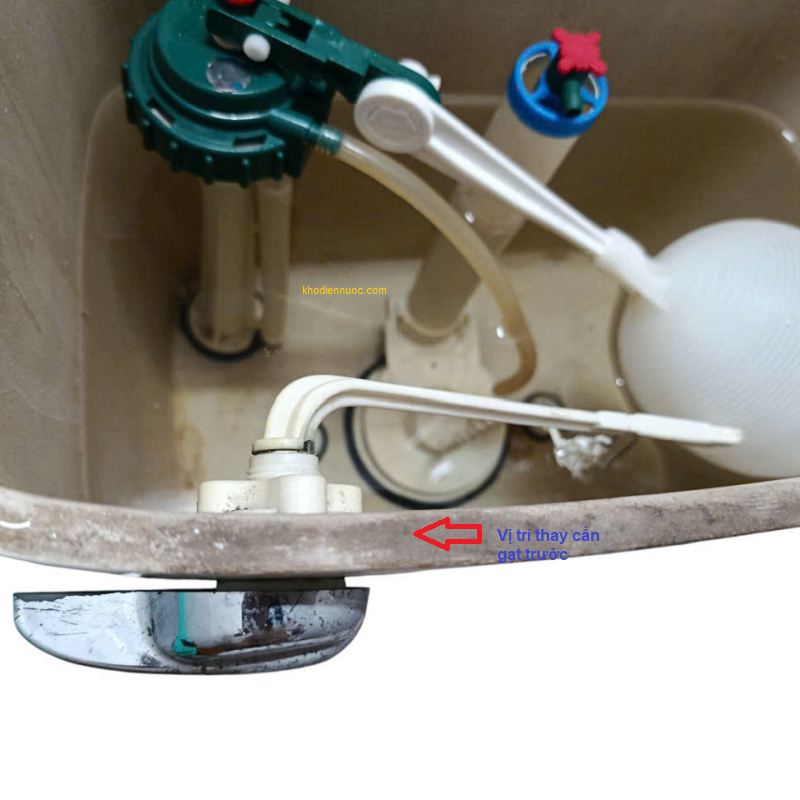 Nếu cụm gạt bị hỏng hoặc mòn, quá trình xả nước sẽ bị yếu, chậm hoặc không xả được.